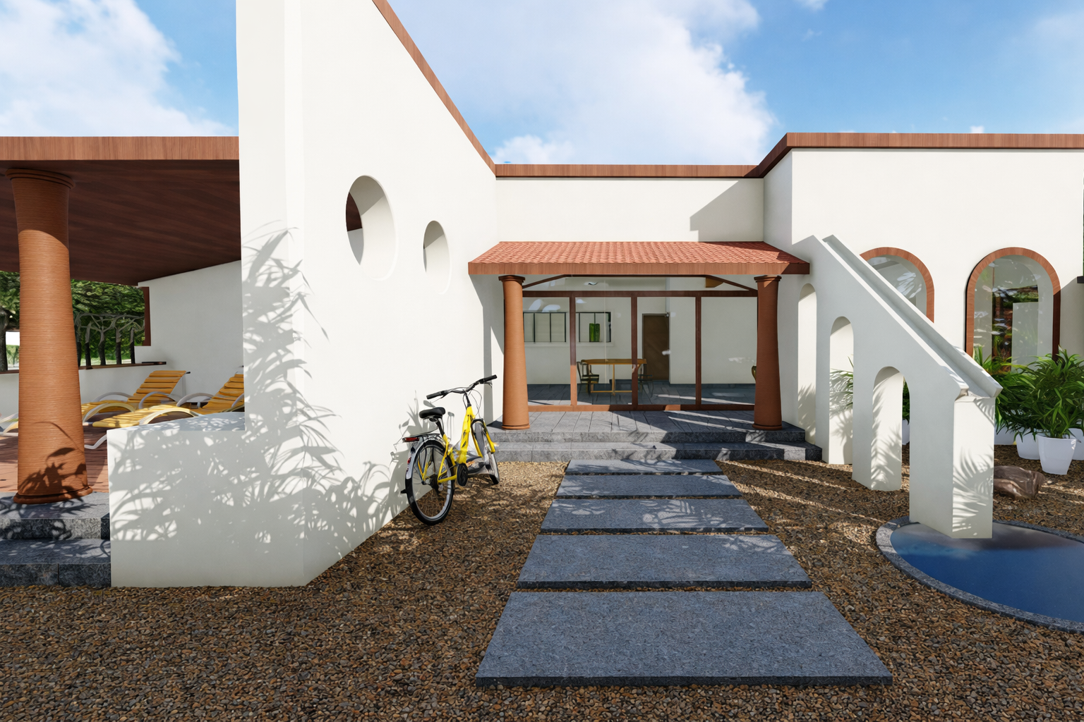 The spatial experience is defined by gentle, fluid transitions — verandas leading to terraces, corridors opening into courtyards, and thresholds softened by light and texture. These transitions encourage unhurried movement and enhance the home’s sense of quiet expansiveness, making daily routines feel calm and intuitive.