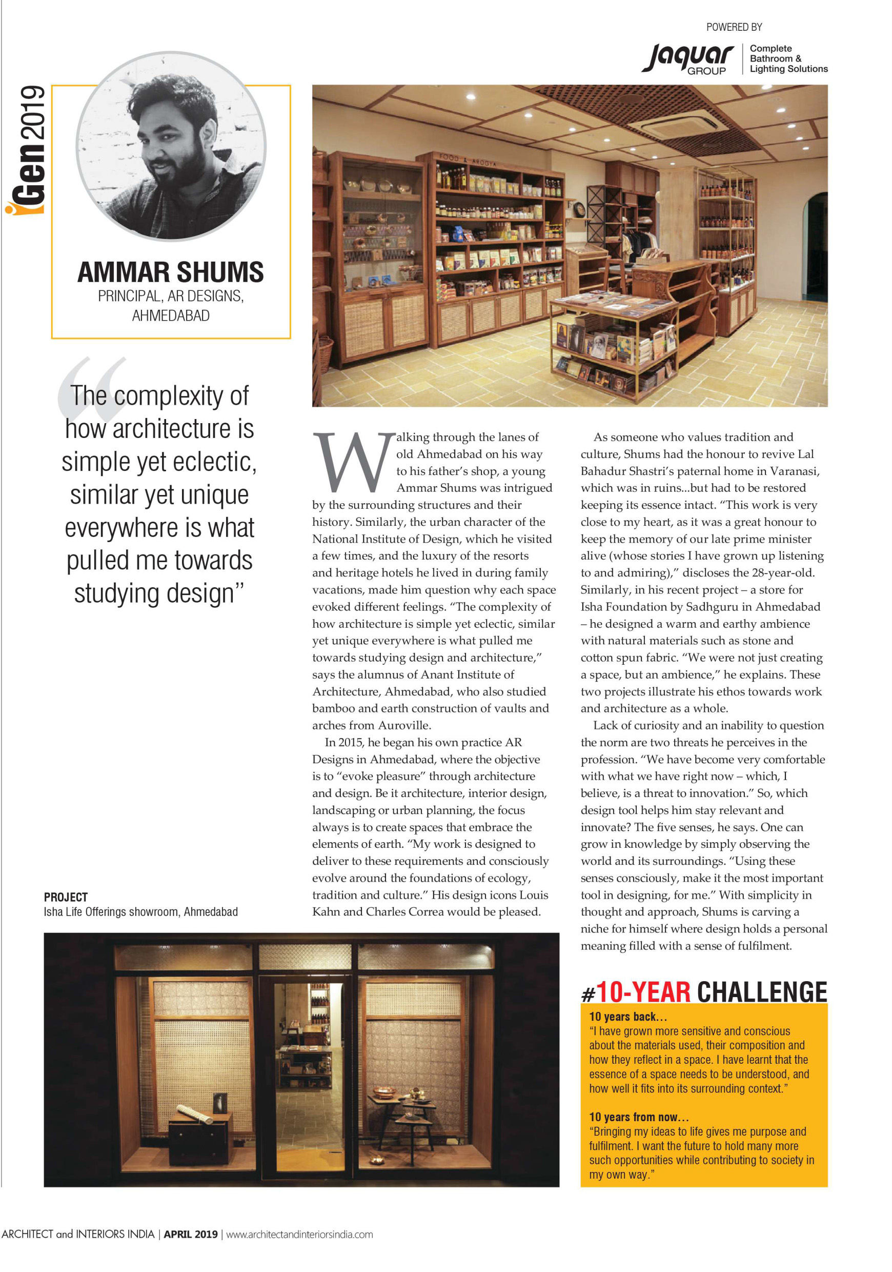 Ammar Shums is design principal at AR Designs since 2015. He maneuvers the studio with a belief in a technically appropriate and ecological sensitive approach that weaves together threads of traditional wisdom into design. His intention is to manifest creative expression stemming from the journey of self – discovery and an ever evolving understanding of life.
