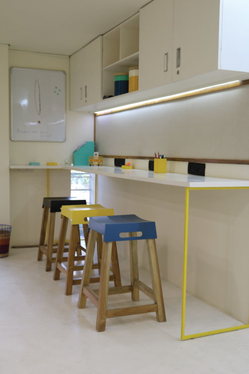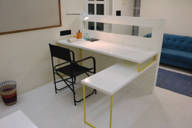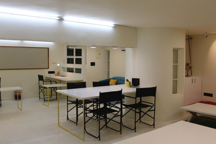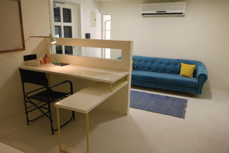 Reflecting the nature of the work space, the design intentionally breaks away from traditional work environments; the task being able to accommodate 12 staff members in 1000 sq ft area and yet making it appear spacious. The office space embraces the elements of an informal and non-hierarchical organization— The office centers on communal aspects encouraging interaction with a large open area to promote discussion and movement.