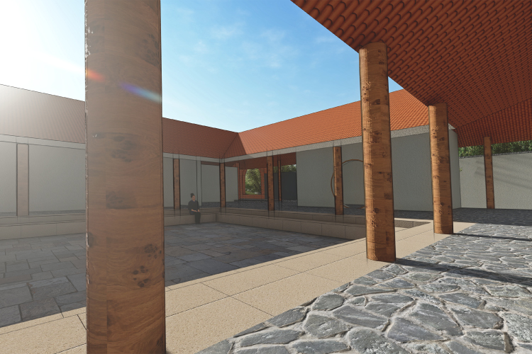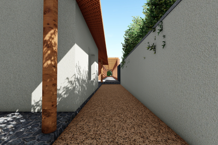 The other block designed with the courtyard in the center with square form. With the play of the level, the courtyard is articulated by traditional wooden columns in the periphery. The concept of this structure is to showcase the replica of the furniture and the spaces that were used by lal bahadur shastri at home and office