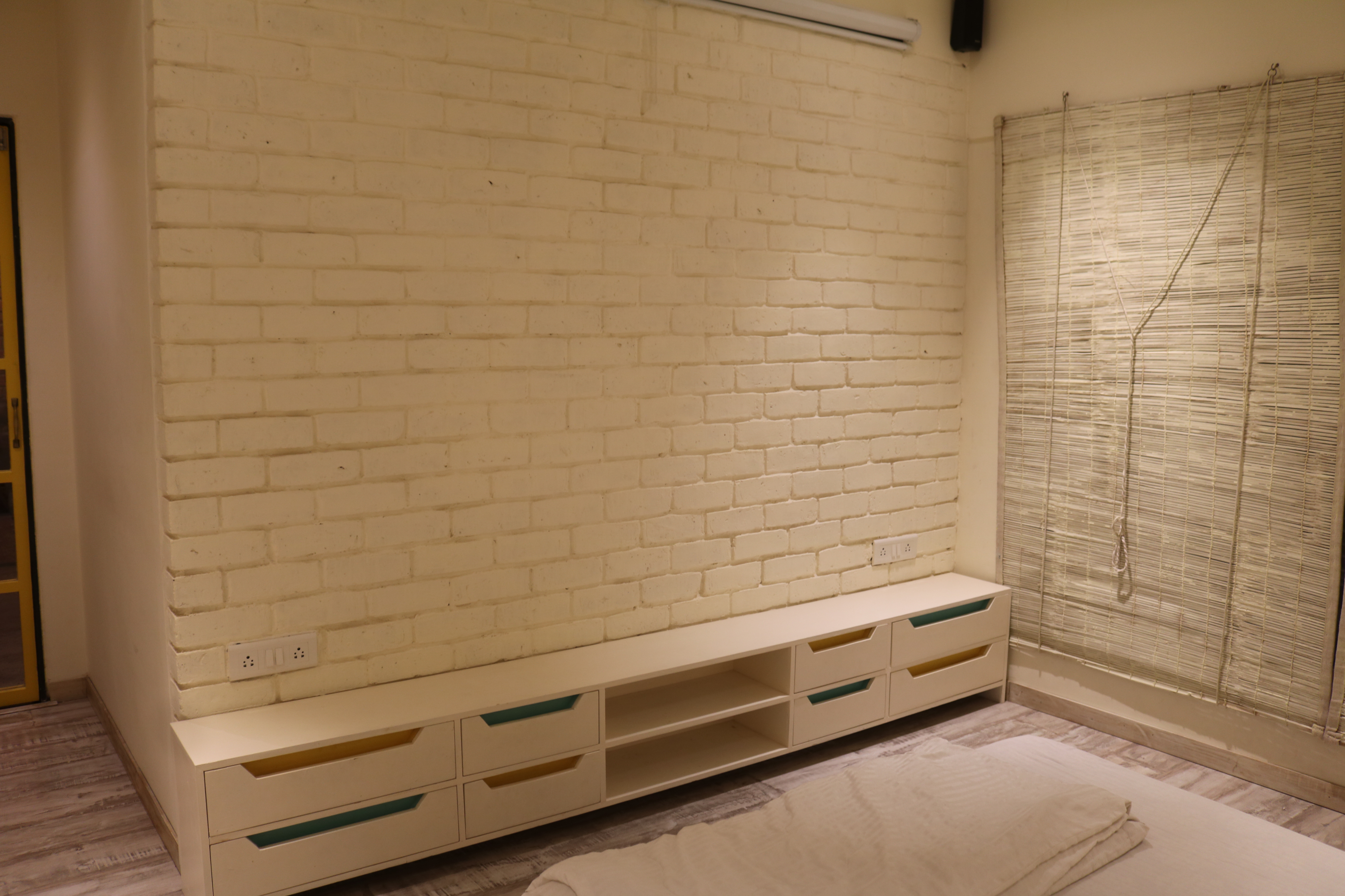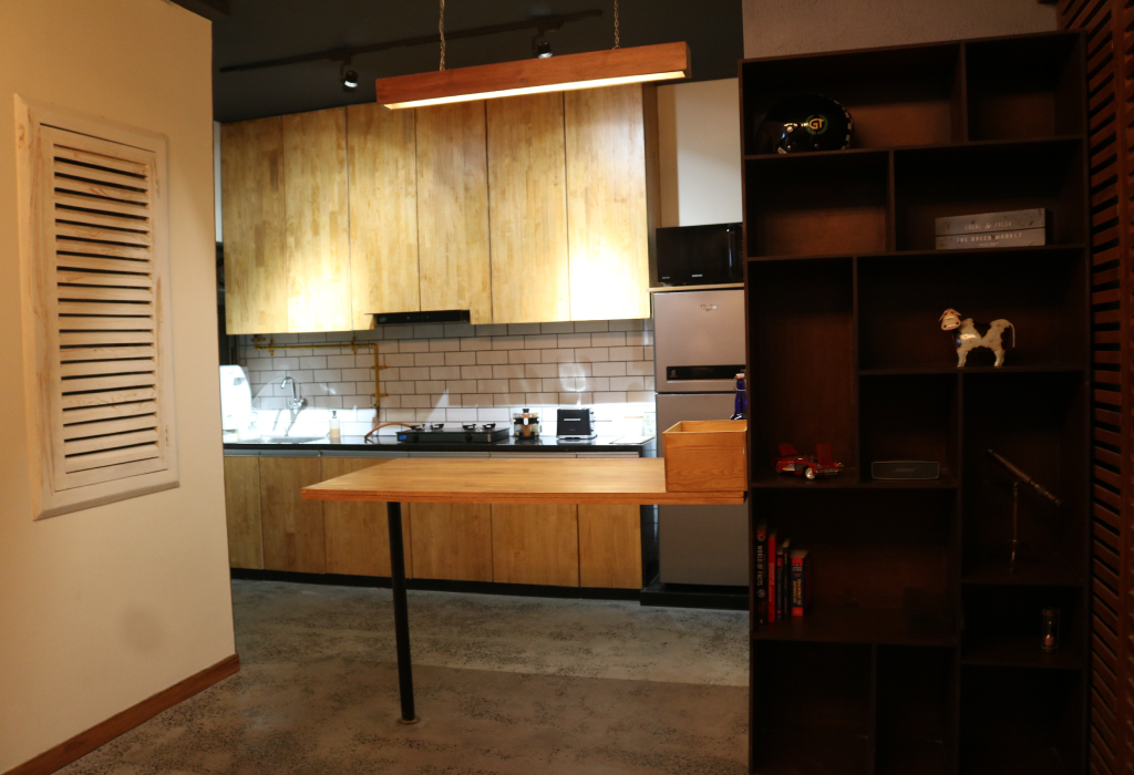 Meadows @ Shantigram is a compact 2-bedroom studio apartment on the 17th floor. A simple palette of materials, colors, wood, glass and steel relatively low maintenance material. The design contributes to the serene elegance of the interior.
